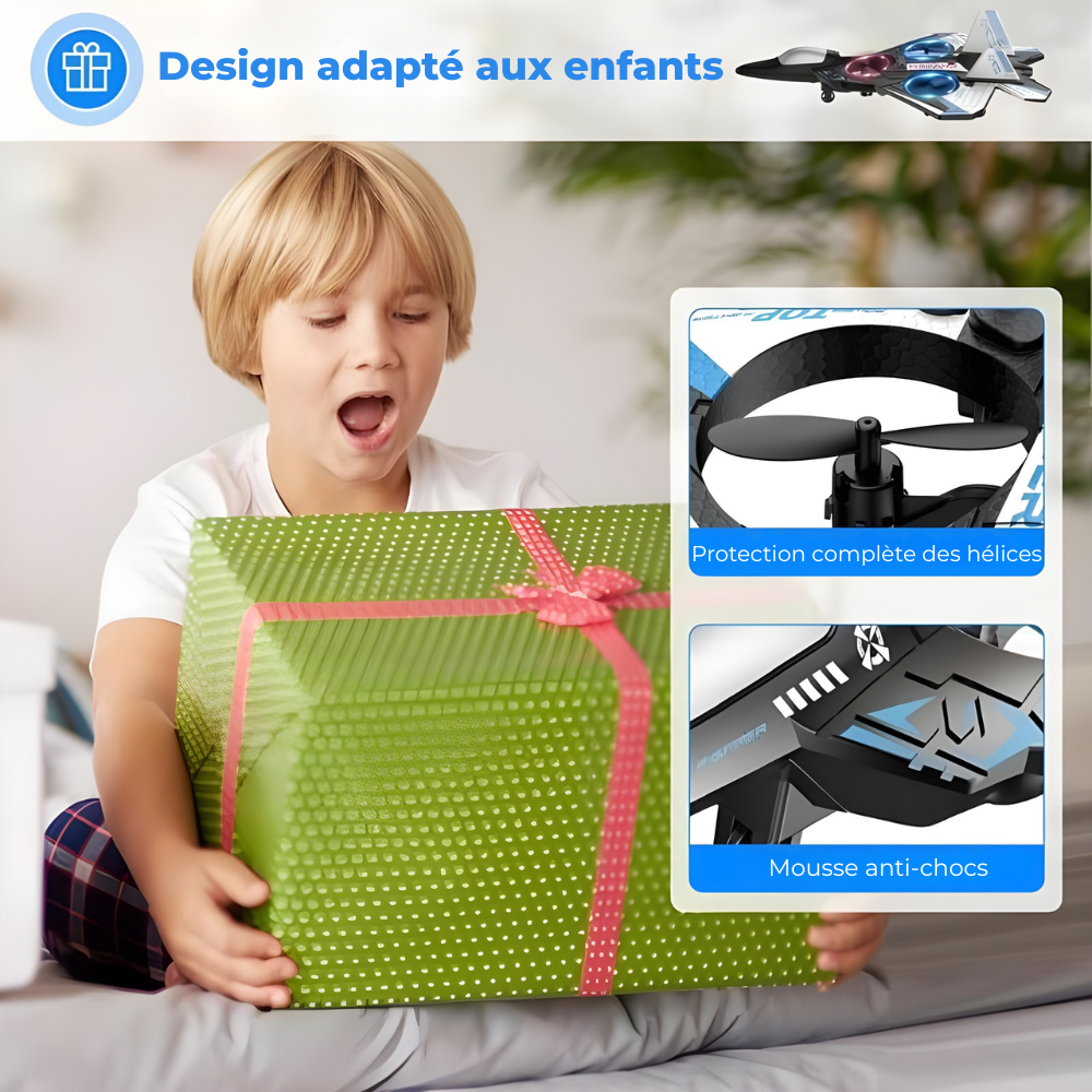 D’une simple pression, l’Avion FlashJet fait des loopings et virevolte dans les airs.